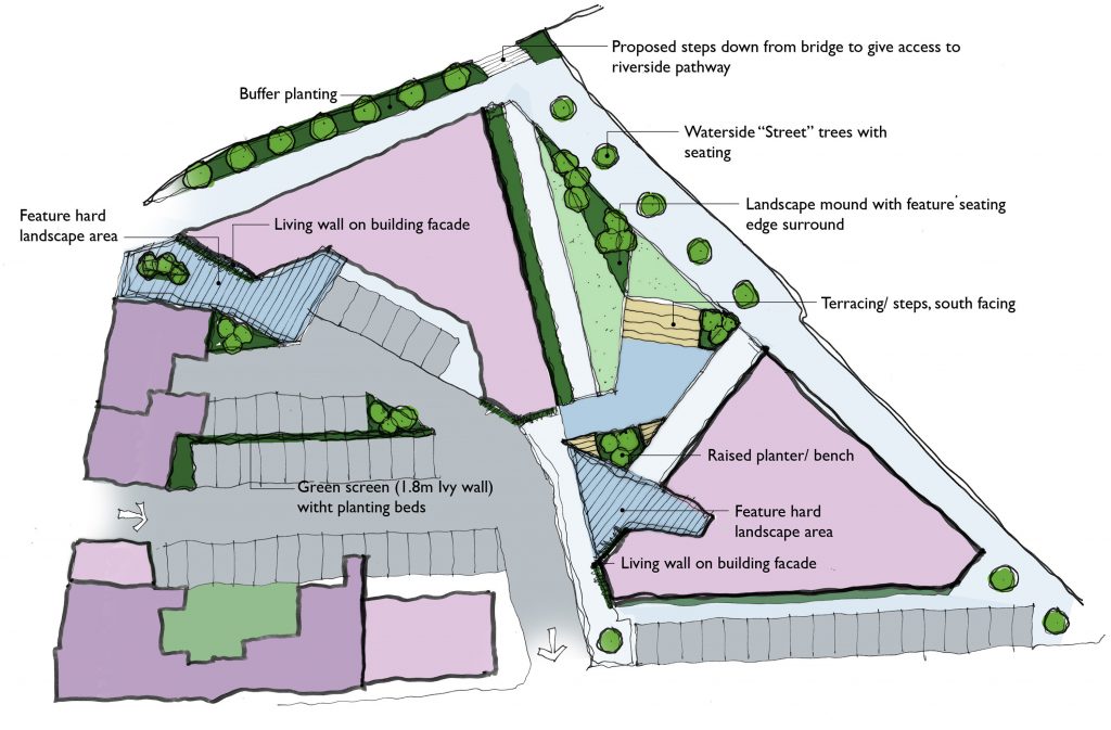 We provided landscape design services for a high quality mixed use development in Boston, Lincolnshire. The site design responded to views to and from significant, sensitive locally prominent features. The proposal also involved a new large riverside public plaza.